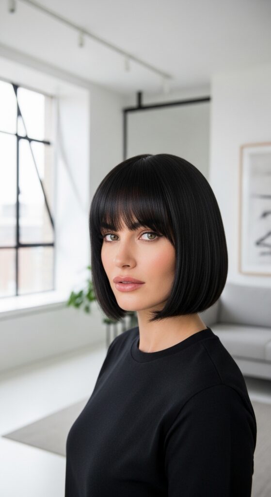 Talk about a contrast that works. The sleek, sharp lines of a blunt bob get instantly softened with wispy, piecey bangs. This combo is a huge part of the quiet luxury bob trend—polished but not perfect.