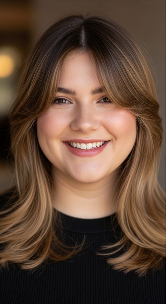 If you have a round face, length is your friend. Ask for longer, wispy bangs that blend into dramatic face-framing layers. This creates the illusion of length and elegantly slims the face.