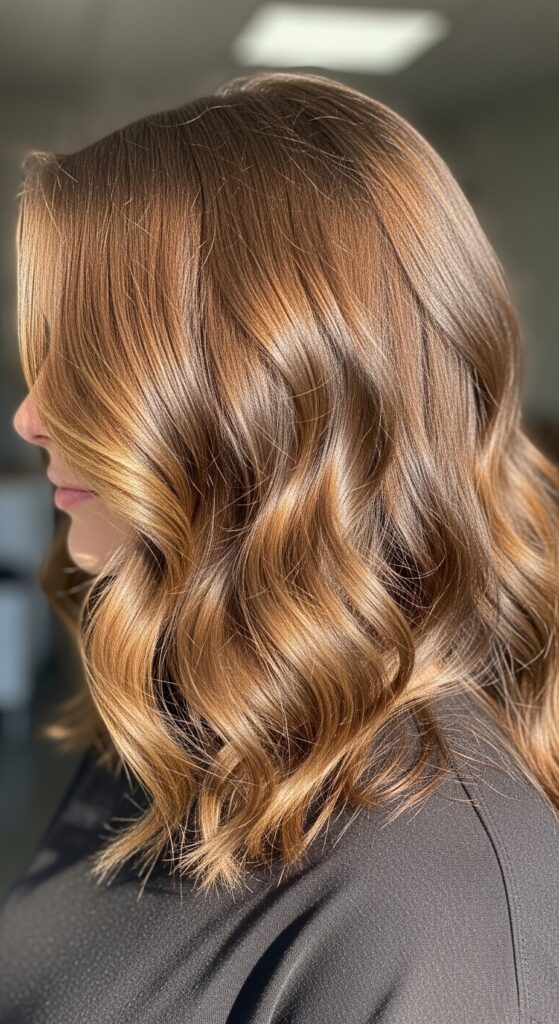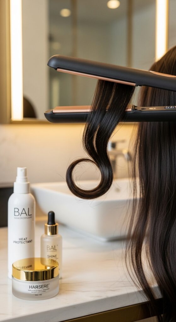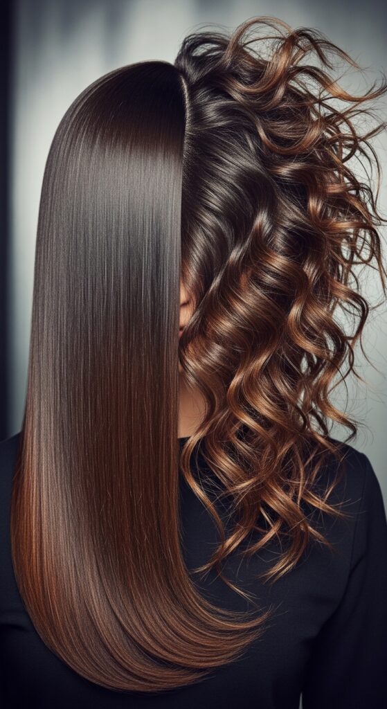 Start curling from mid-length down, leaving the roots straight for a modern feel. After curling, brush through the waves gently with a wide-tooth comb to blend them into a seamless, wavy flow.