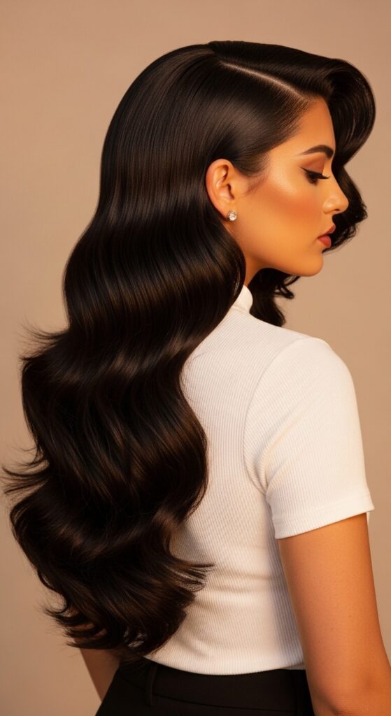 This is the ultimate fantasy wave. For super long hair, you need a larger barrel—1.5 inches or more. The goal is a deep, rolling wave, not a springy curl. It feels very old money hair: timeless and elegant.