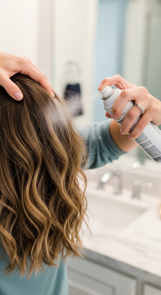 Your second-day waves might be flat or frizzy. Let’s fix that. This is about revival, not restyling. Dry shampoo is your hero here—it absorbs oil and adds grip for renewed texture.