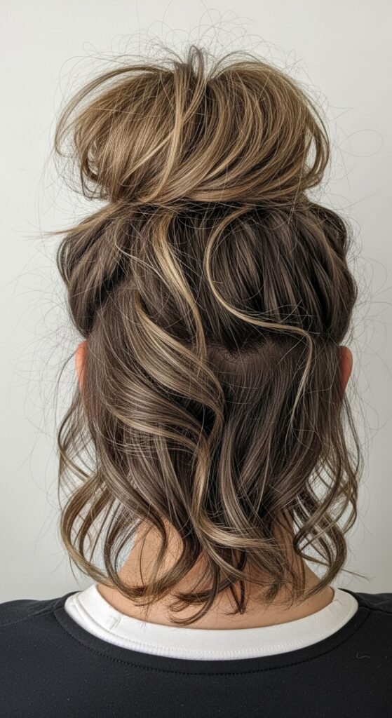 Even an updo can have beachy texture. This isn’t a tight ballerina bun. It’s a loose, messy knot that lets your texture shine. Perfect for bad hair days that still need to look good.