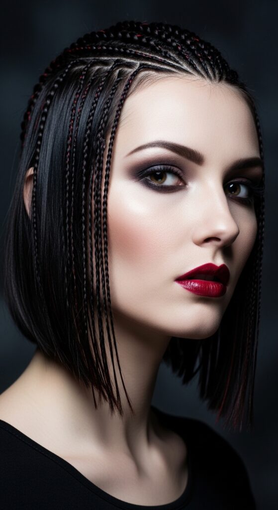The vampire haircut is all about sharp lines and dark drama. Combine it with cornrows by cutting the ends into a sharp, angled bob.