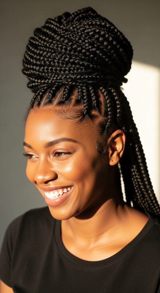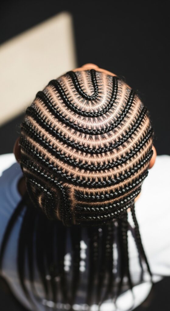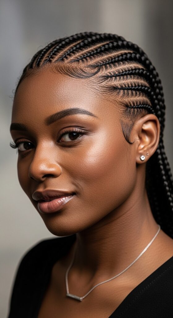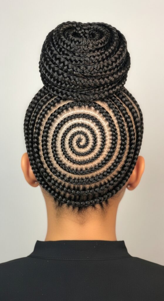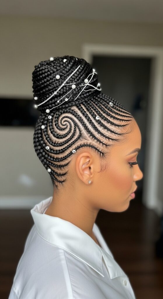When you need to look polished for a wedding or interview, a cornrow updo is your best friend. It’s clean, professional, and takes your outfit up a notch.