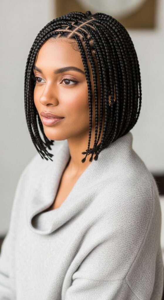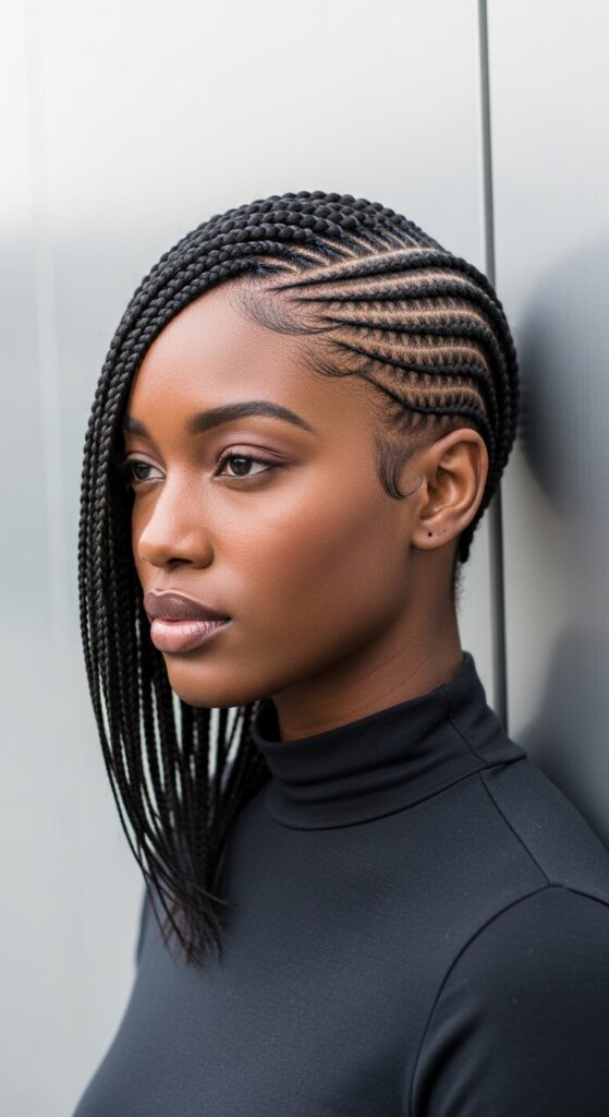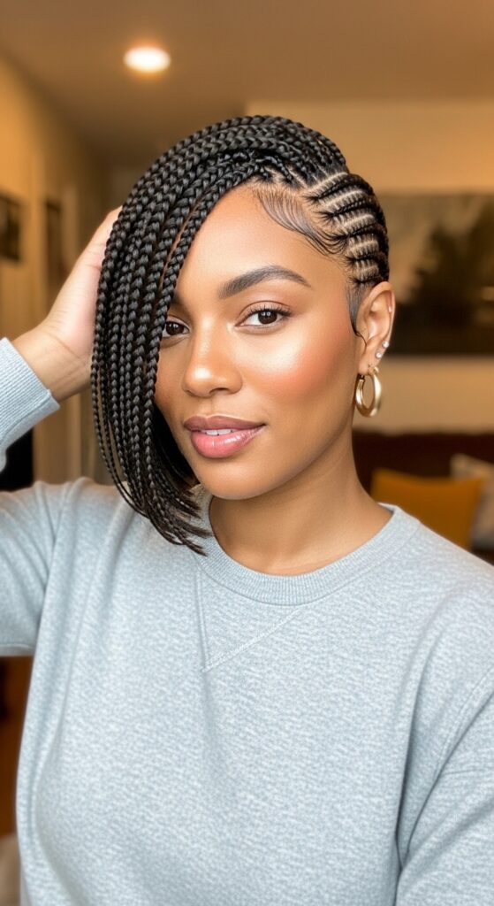A deep side part transforms any bob. It adds instant volume and movement, making your cornrows look fuller and more dynamic.