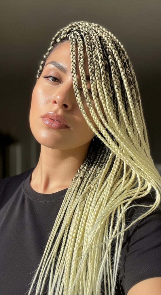 Stitch braids have a distinct look with visible horizontal parts. They’re extremely neat and give off that “old money quiet luxury” vibe.