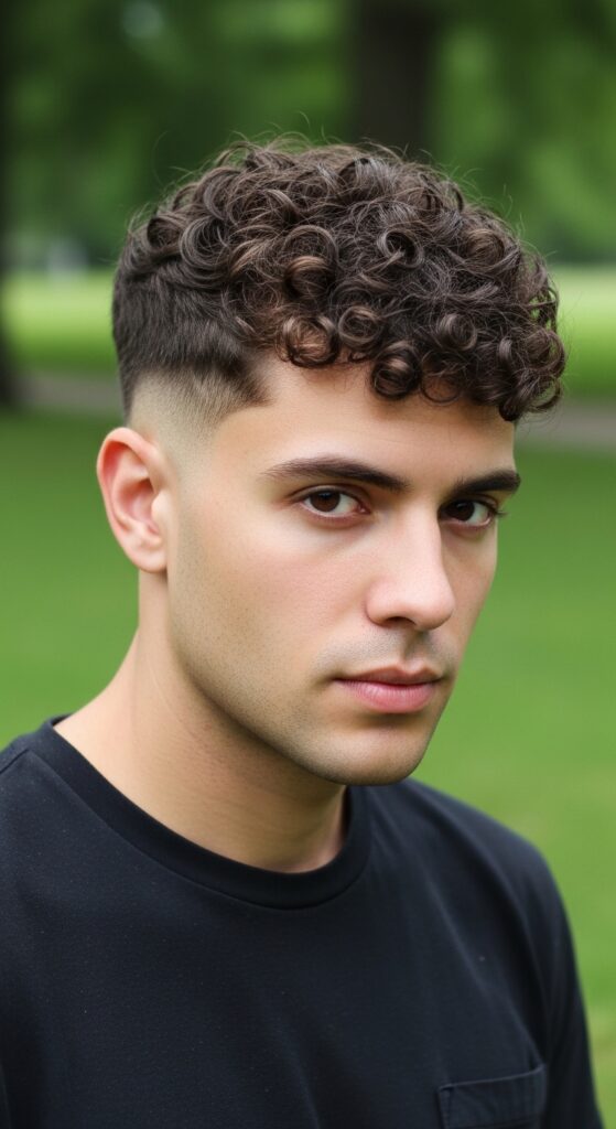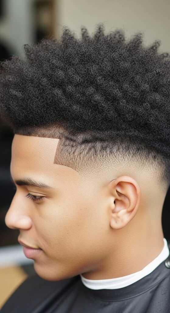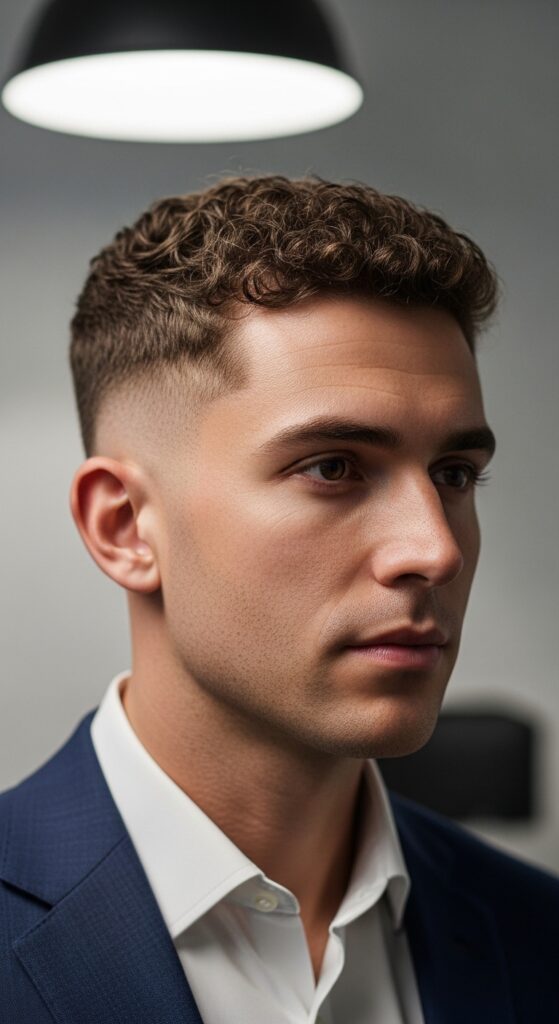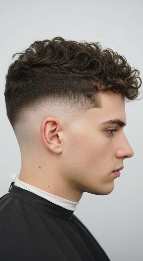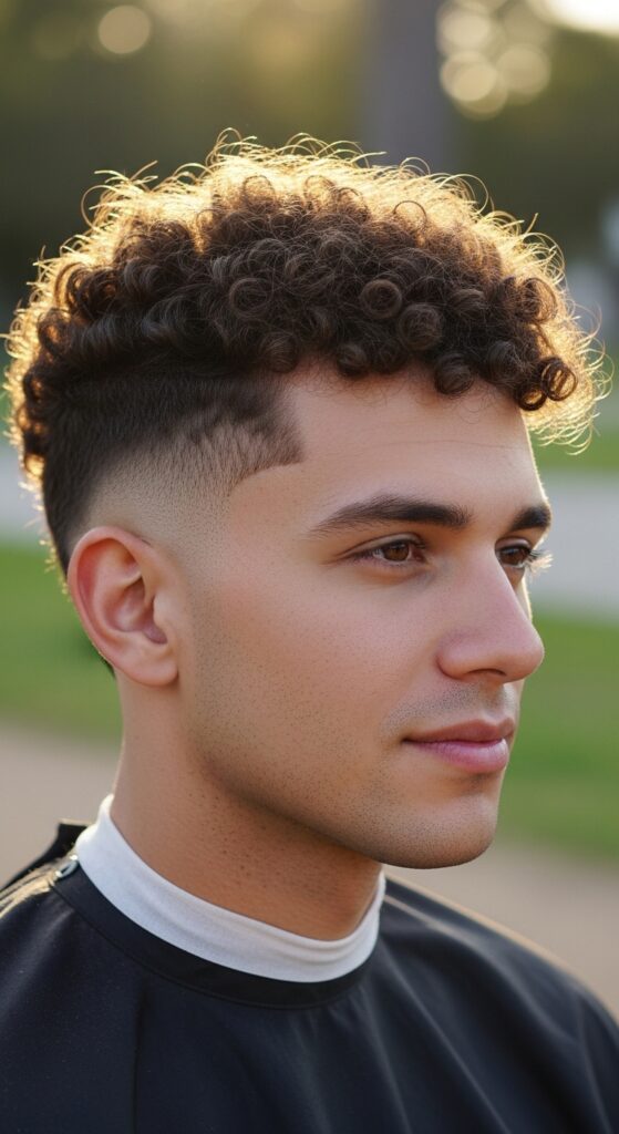 Curly guys, this one’s for you. A fade with curls on top gives you structure and style. It keeps the bulk off the sides so the curls can shine.