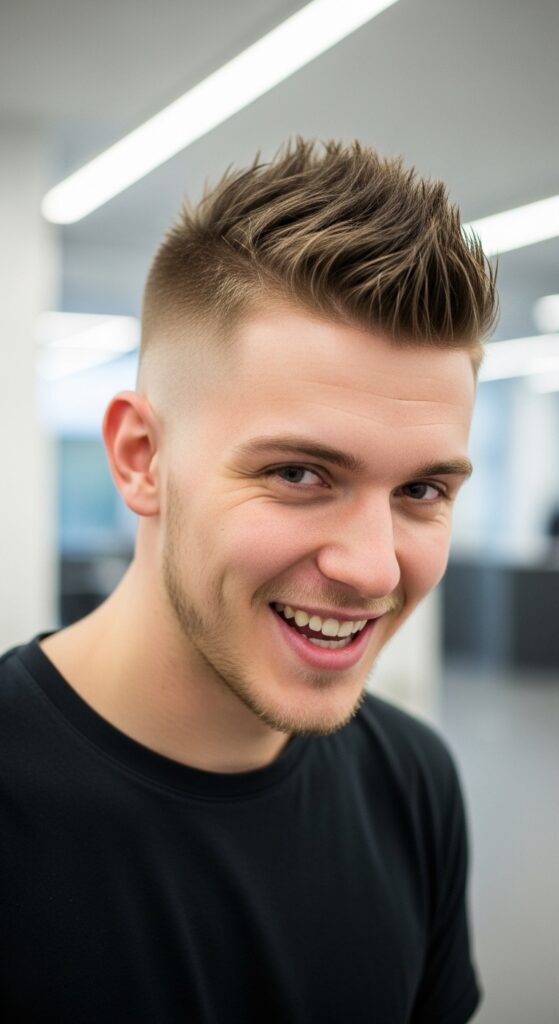 Not ready for a full mohawk? The faux hawk fade gives you that edgy vibe while staying office-appropriate. The top is styled upward, but the fade keeps the sides tight.