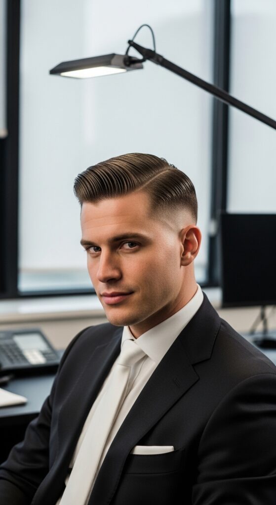 This is a great choice if you want something that screams “professional” without any drama. It’s also one of those rare cuts that works for both young guys and older men. Simple, sharp, and super reliable.