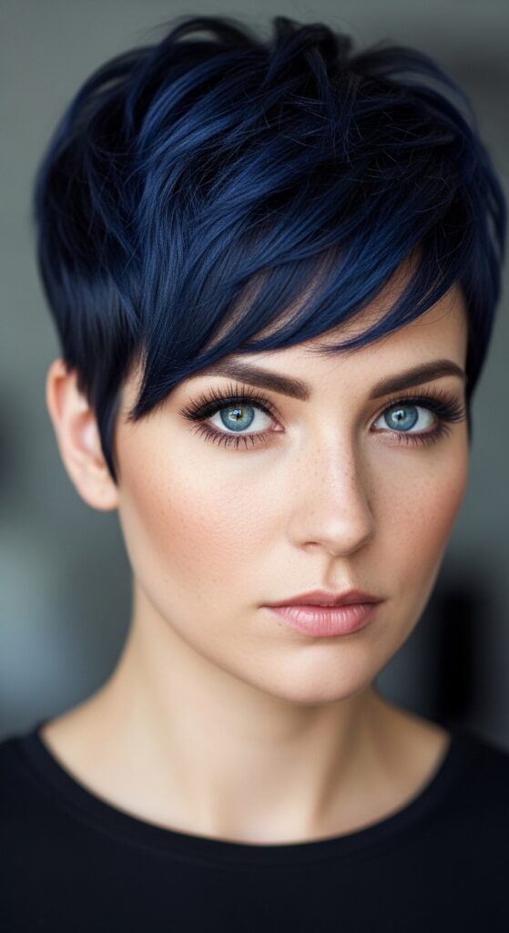 Short hair lovers, this is for you. A blue black pixie is bold, confident, and incredibly chic. It draws all the attention to your face and your eyes.