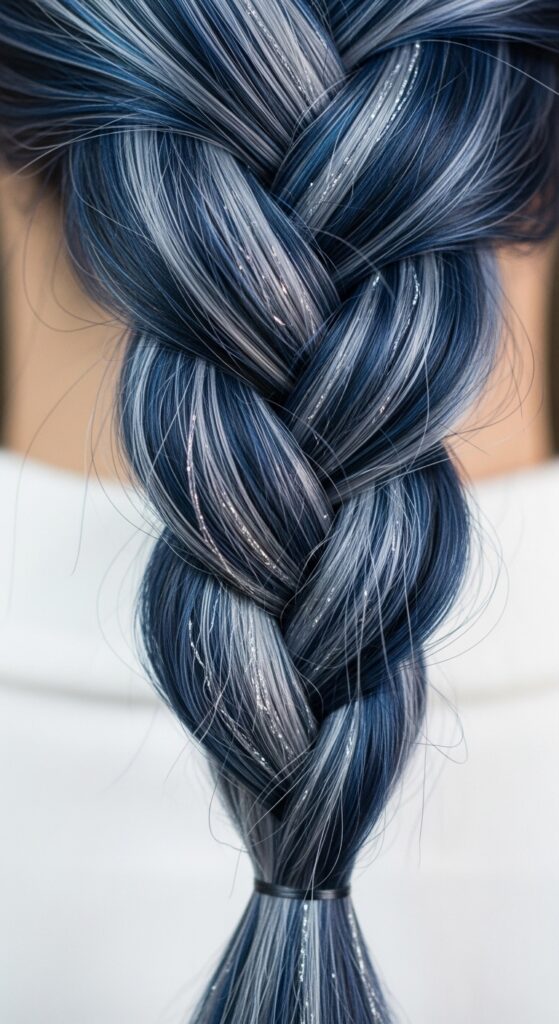 Add even more dimension by weaving in tiny, fine babylights in a silvery-blue tone. This mimics how light naturally hits the hair, creating an incredible, shimmering galaxy effect.