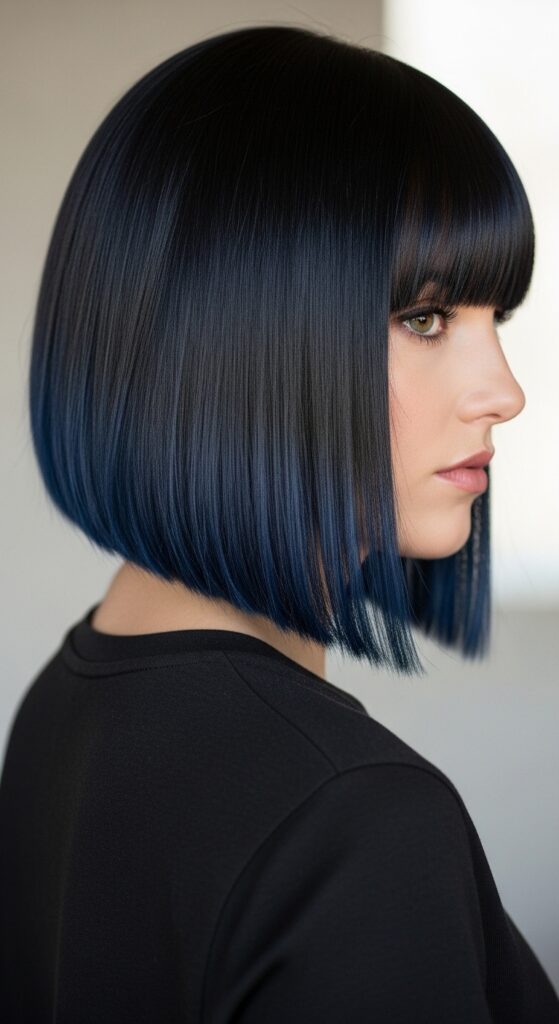You can’t go wrong with this. A sharp, chin-length bob in solid blue black is the ultimate power move. It’s sleek, modern, and surprisingly low-maintenance once you have the color locked in.