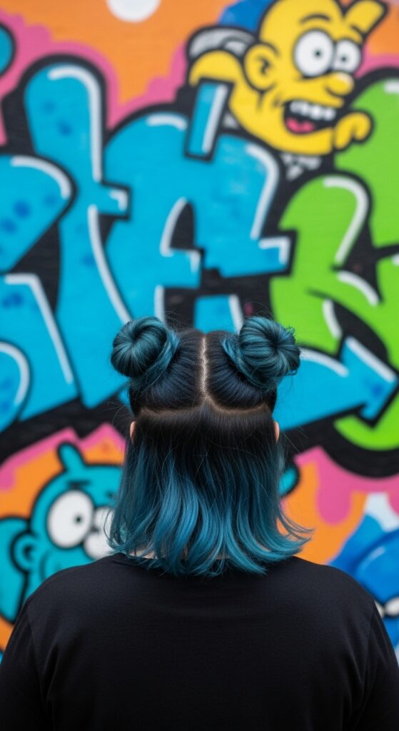 19. Blue Black Space Buns
