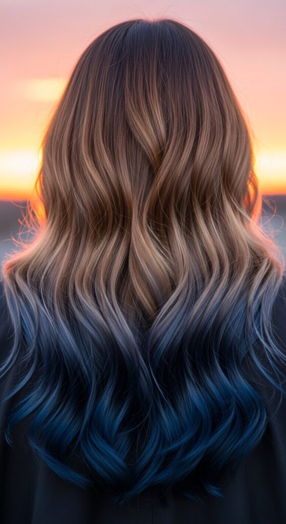 For a more obvious take on balayage, go for navy blue tips. The transition from deep black to a rich, oceanic blue is stunning. It’s less electric than royal blue, feeling more sophisticated.