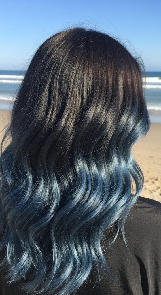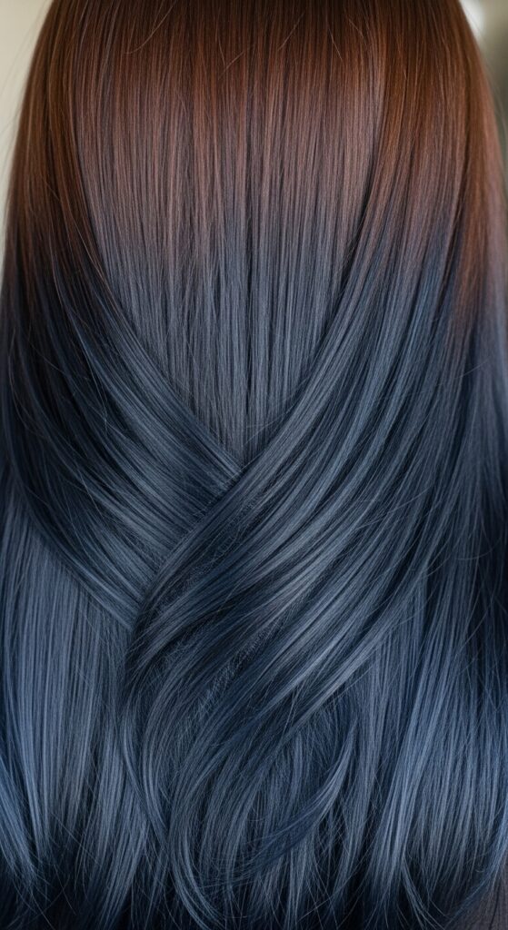 Start with a deep brunette at your roots and let it melt dramatically into blue black mid-shaft down. This creates a beautiful, gradient effect that feels warmer and more organic than a stark contrast.