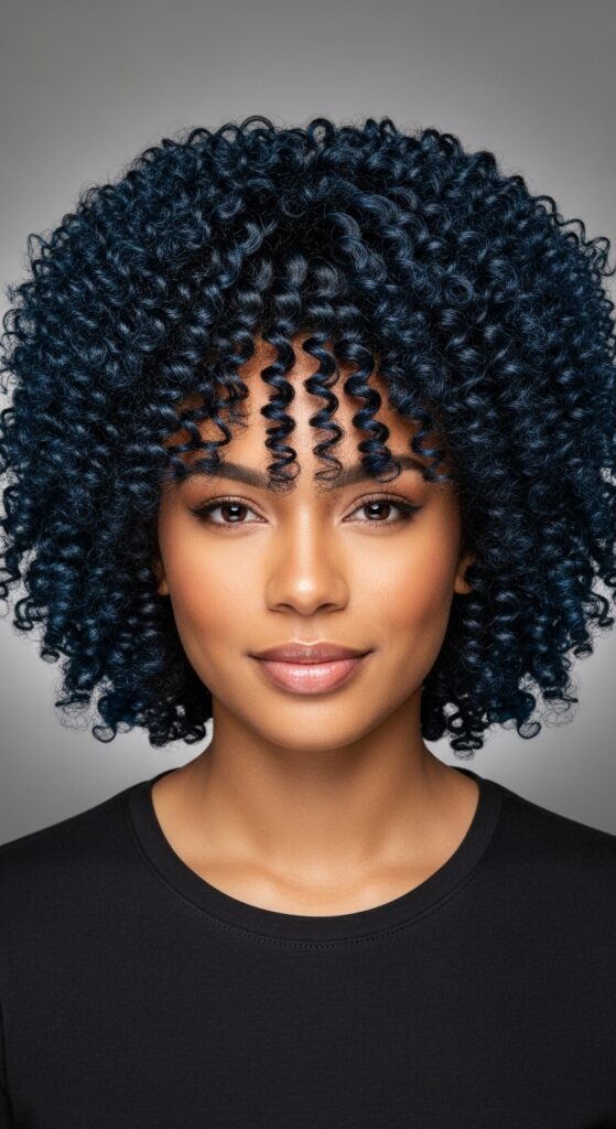 If you have curly or coily hair, this color is a dream. Blue black adds unbelievable depth and definition to every curl. It looks like a cascade of dark sapphires.