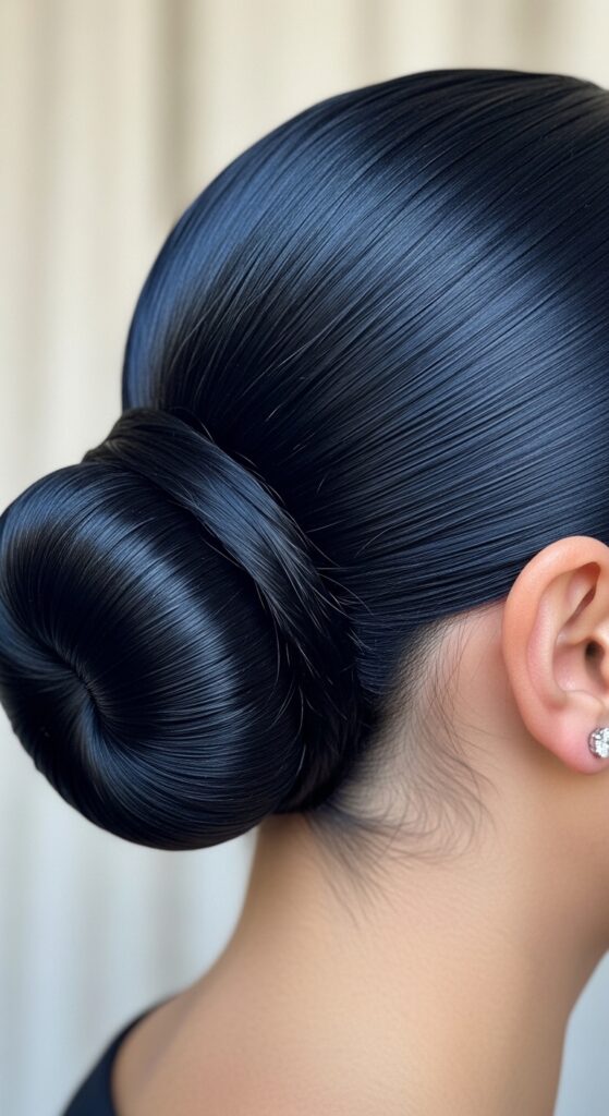 Imagine this color in a sleek, low bun or a chignon. That’s old money hair at its finest. The color reads as classic black from afar, but up close in certain lights, the sophisticated blue shimmer is revealed.