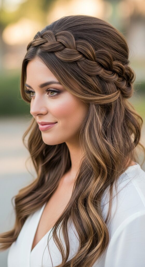 This look gives you the elegance of an updo with the freedom of leaving your hair down. It’s perfect for keeping hair off your face while showing off your length and texture. It pairs beautifully with 2026 hairstyles leaning into soft, romantic details.