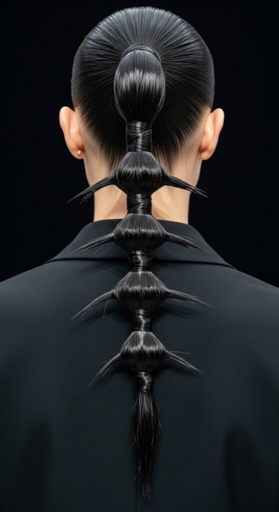 Enter glitchy glam hair. This trend is about intentional disruption. Think a sleek base with a knotted section that looks almost digital. It’s high-fashion and surprisingly easy to mimic.