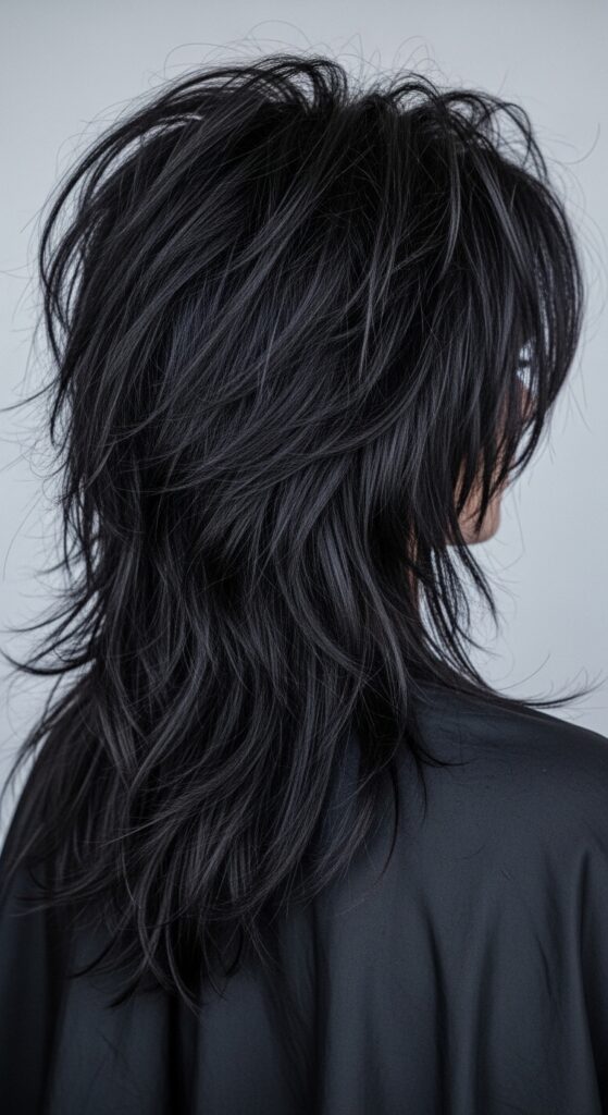 Gather the longest, face-framing layers (the “vampire” points). Bring them to the back, just above the nape. Tie them in a single, loose knot and pin the ends under. Let the shorter, choppy layers around your face do their thing.