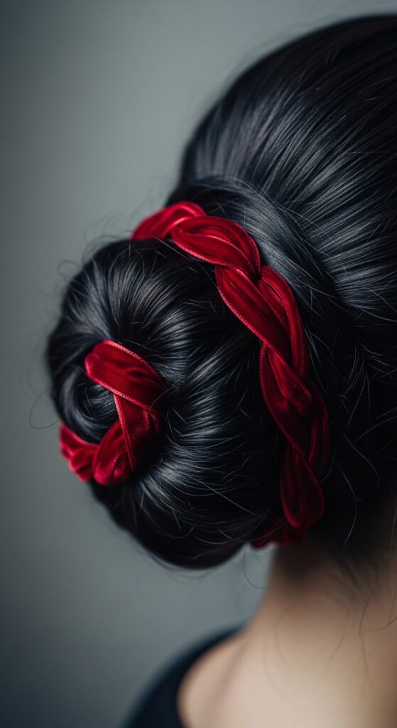Boho meets drama. This look takes the softness of a knot and adds an edge, perfect for blending into romantic goth hairstyles. It’s all about deep side parts, texture, and a touch of dark romance.