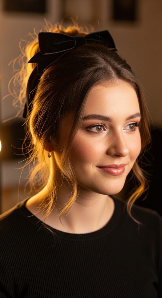 Tie a velvet or satin ribbon into a bow at the back. This is romantic goth hairstyles meets cottagecore. So pretty.