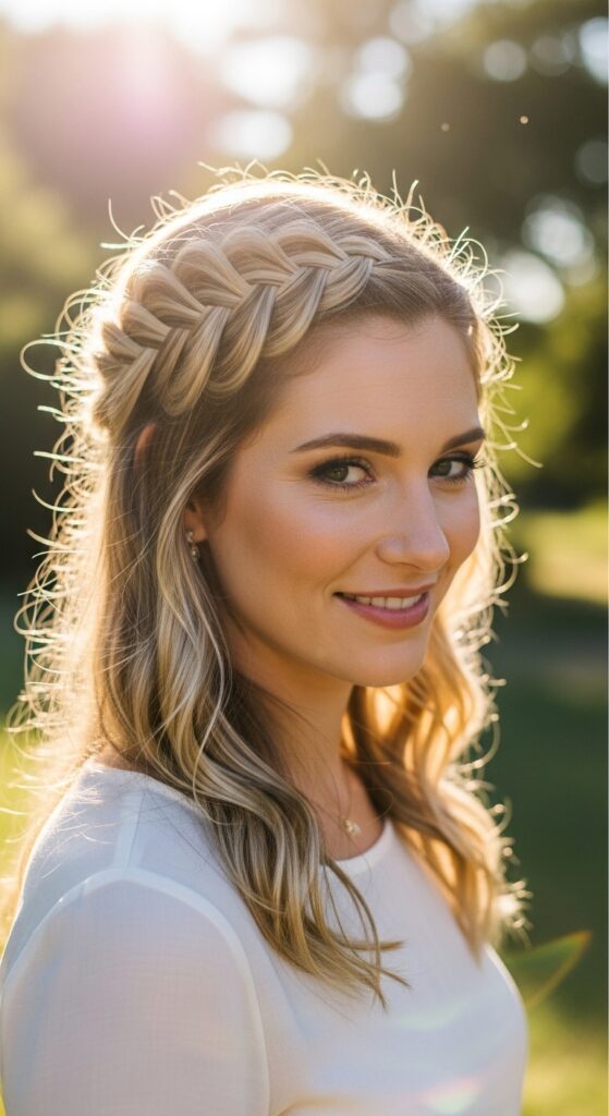 Braided Crown With Loose Waves