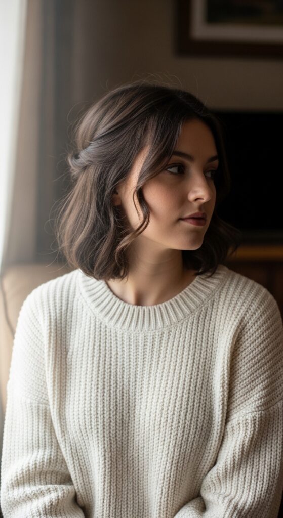 If you’re rocking a bob (or even a long bob), this is your moment. The quiet luxury bob trend is all about clean lines and minimal effort. Just pull the top half back and secure with a small claw clip.