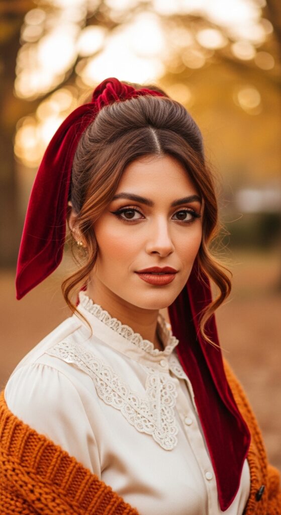 Half Up With a Velvet Scarf