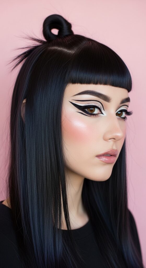 The hime cut is all about dramatic, face-framing layers. This simple half-up style celebrates that. It gives a playful, slightly retro feel that’s perfect for adding personality to your look without any heat.