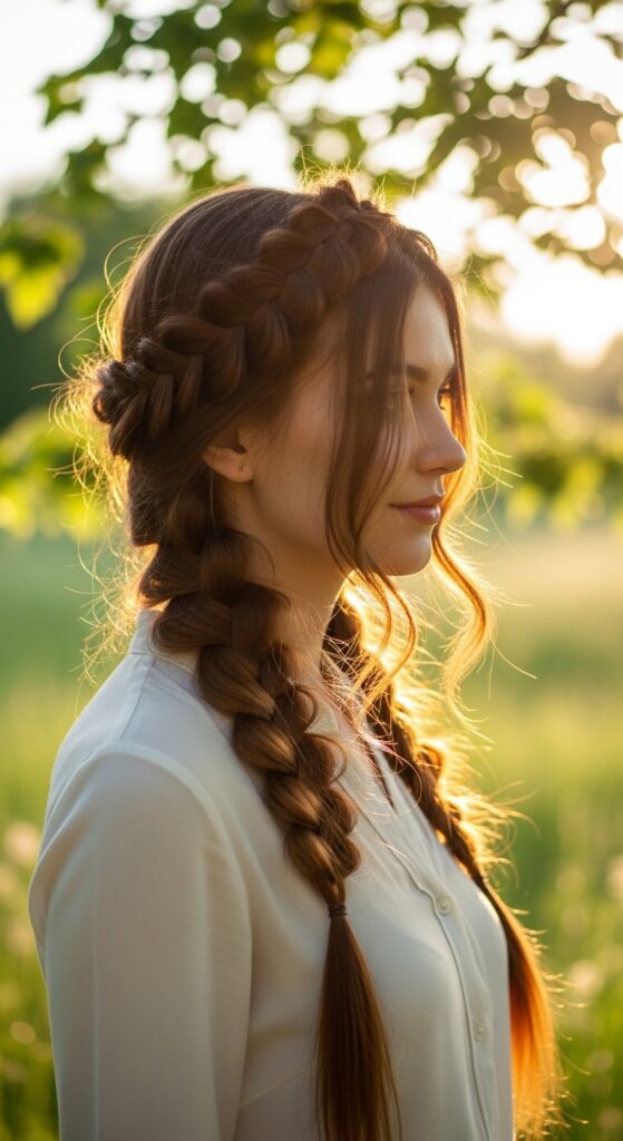 Repeat on the other side. Take the first braid, drape it across the crown of your head, and pin it securely. Do the same with the second braid, overlapping the ends of the first. Tuck and pin all the ends underneath for a seamless crown.