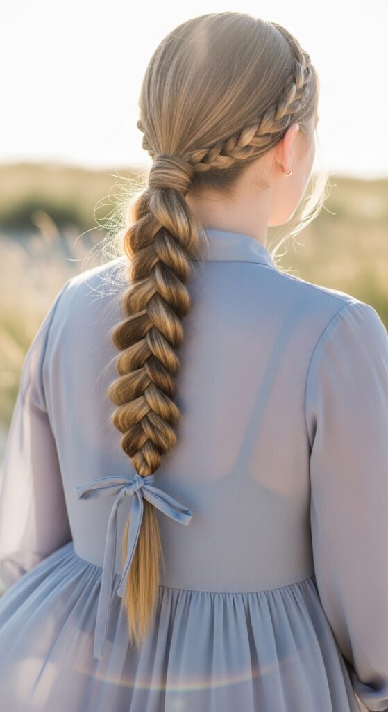 Elevate a basic ponytail in under two minutes. The rope braid detail adds texture and a boho-chic element. It’s perfect for dirty hair days when you still want to look like you tried.
