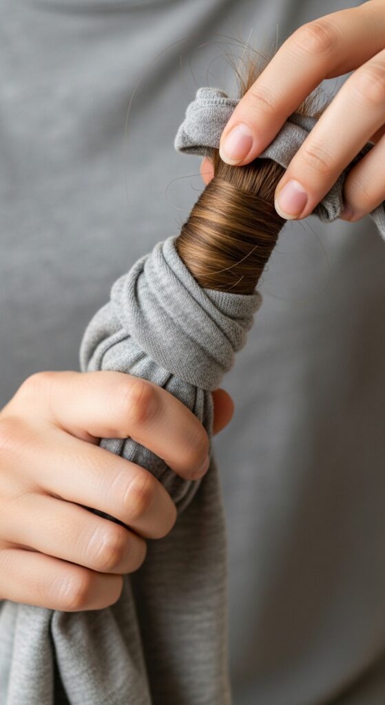 No fancy tools needed—just an old, soft cotton t-shirt. This method creates beautiful, beachy waves that look like you spent an hour with a curling wand. It’s my go-to for second-day hair that needs a refresh.