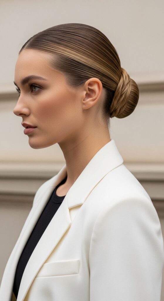 For a polished look that takes 60 seconds, this is it. It works beautifully on a quiet luxury bob or longer hair, giving you that “I have my life together” vibe. It’s perfect for Zoom calls or running errands in style.