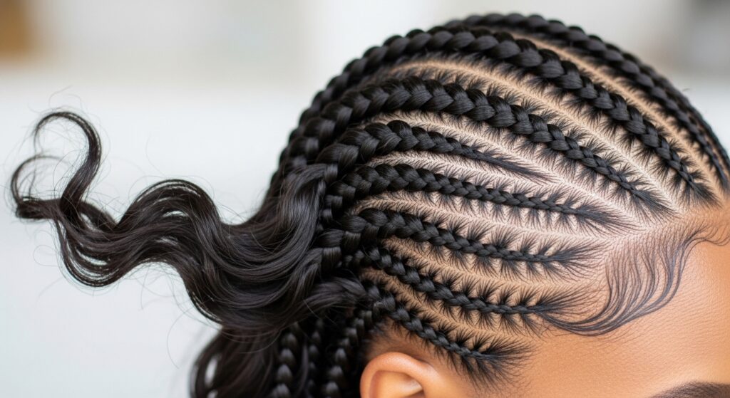 To ensure your statement style lasts and your natural hair stays healthy, follow these care tips. Moisturize your scalp and braids regularly with a lightweight oil or braid spray to prevent dryness and itchiness. At night, protect your style by wrapping your head in a silk or satin scarf or using a satin pillowcase to reduce friction and frizz. Keep your scalp clean by diluting shampoo with water in a spray bottle and gently cleansing along the parts, then following with a light conditioner. Avoid heavy products that can cause buildup. Finally, listen to your hair; if your braids are too tight, gently massage the area or consult your stylist to avoid tension alopecia.