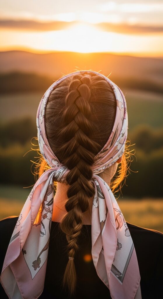 French Braid With a Silk Scarf