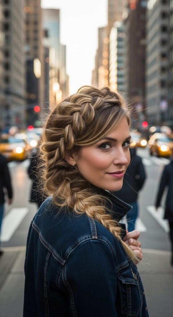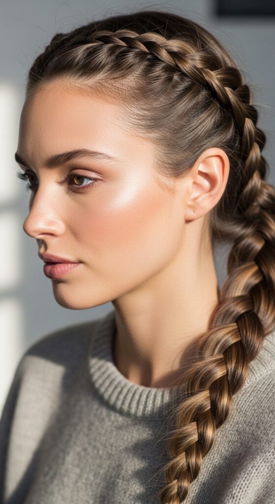 Skip the shine and go for matte texture. Use a dry shampoo or texturizing powder before braiding. The result is a braid that looks lived-in and cool, not stiff.