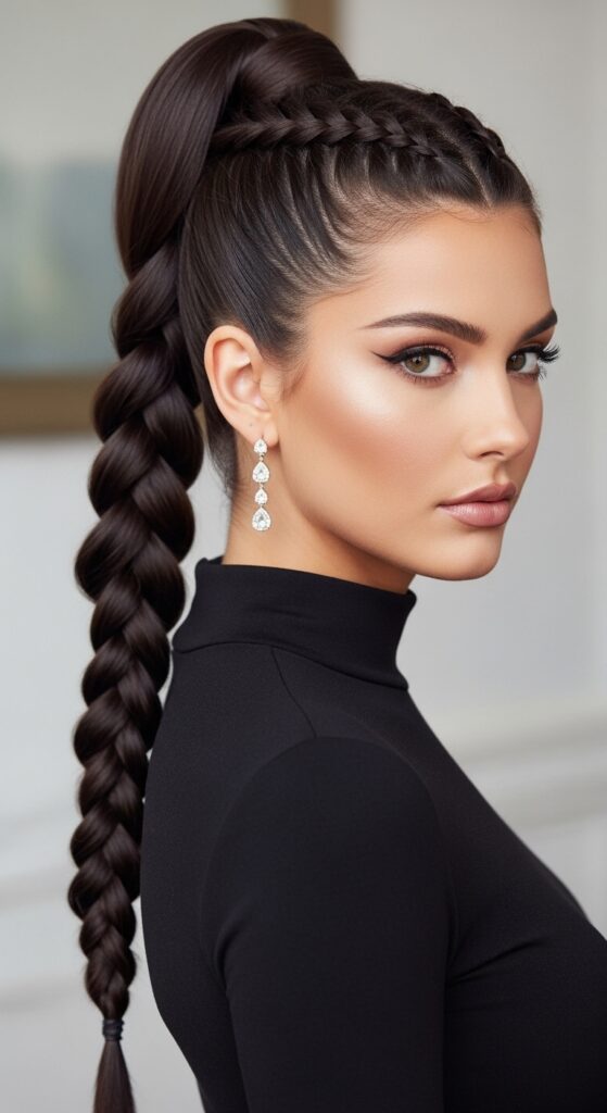 French Braid With a Sleek High Ponytail Base
