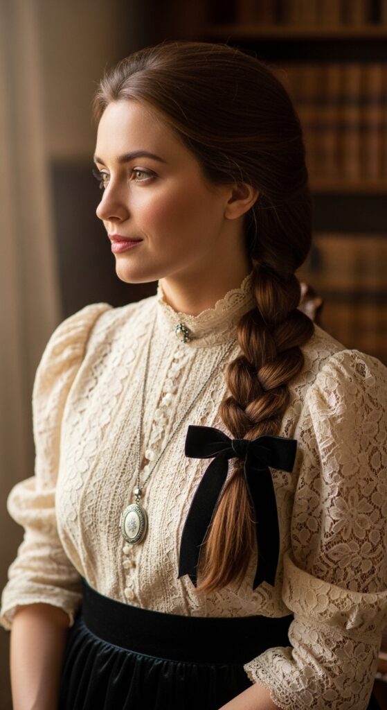 A velvet bow at the end of your braid is an instant upgrade. It’s romantic, a little old-school, and works for any occasion. Tie it at the base or at the middle of the braid.