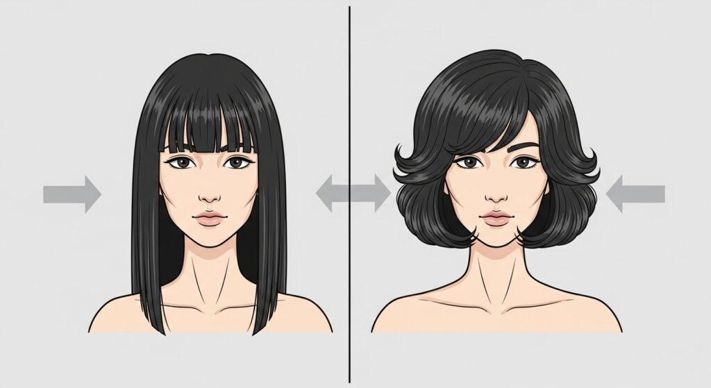 While no style is truly off-limits, some can accentuate narrowness. Extremely sleek, center-parted styles like a tight, low ponytail or pin-straight, flat-ironed hair can create a long, unbroken vertical line. Very long, tapered layers that thin out at the ends may also fail to create the necessary volume. This doesn’t mean you can never wear these looks—just balance them with wider necklines or statement earrings to add the horizontal width back.