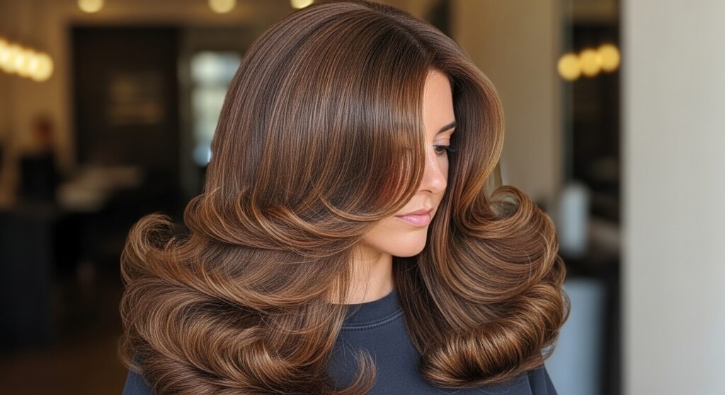 12. Big, Bouncy Blowout: The classic blowout, with volume at the roots and ends flipped outward, is a timeless way to create a wide, glamorous silhouette.