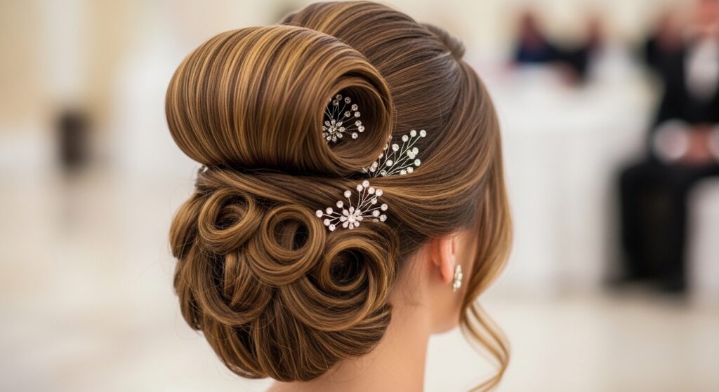 The Half-Up with a Roll: Create a high half-ponytail, then gently backcomb the ponytail itself. Roll it under and pin it to the base to create a soft, voluminous roll or “pony bump.” This adds incredible glamour and vintage elegance.