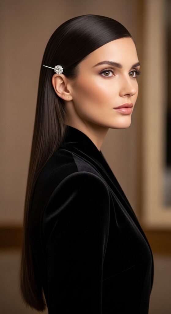 Start with super smooth, blown-out hair—a middle part is key here. Then, take a single, stunning diamond or pearl-tipped pin. Slide it right above your ear on one side. That’s it. The simplicity is what makes it so chic.