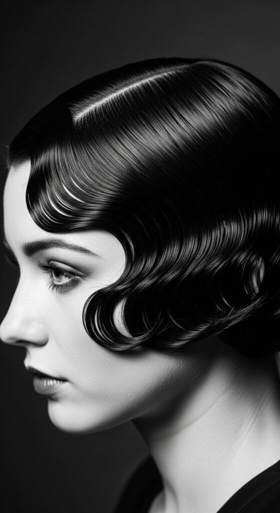 On damp, gelled hair, use a comb and your fingers to create the classic “S”-shaped waves, pinning each section as you go. Let it dry completely or use a diffuser.