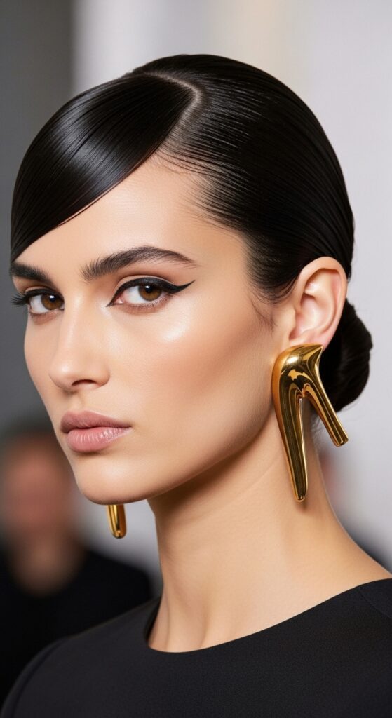 Confidence, thy name is a slicked-back hairstyle. It shows off your bone structure and lets your makeup and jewelry shine. It’s a power move.
