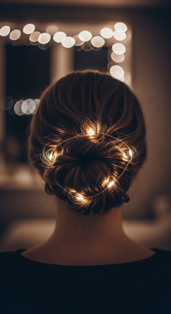 Here’s the magic: before twisting the bun, weave a string of tiny, battery-operated fairy lights or a sparkly hair chain through your hair. When you twist it up, the lights will peek through subtly.