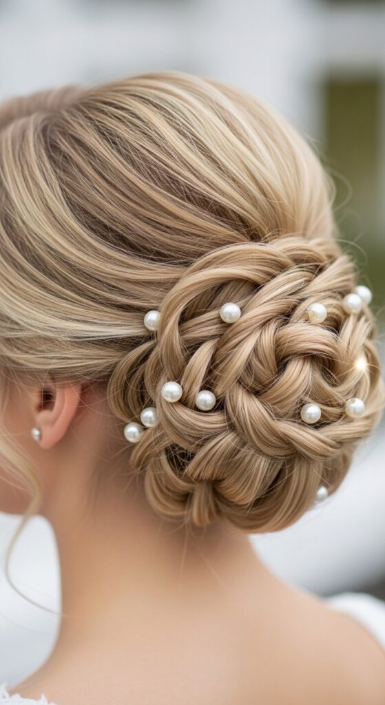 9. Twisted Rope Updo with Pearls