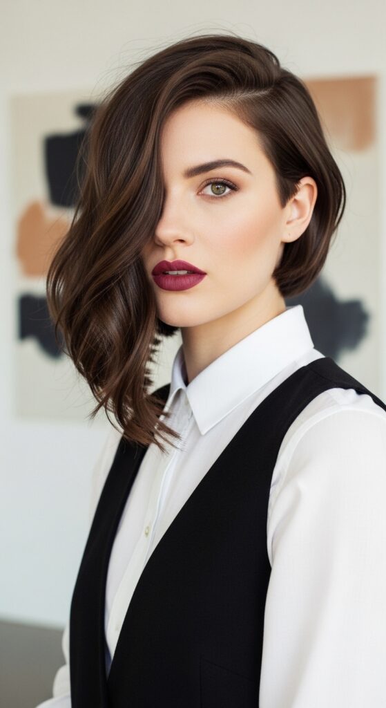It’s surprisingly versatile and flattering. The asymmetry can balance facial features in a really clever way. This is for the woman who wants a distinct, fashion-forward look.