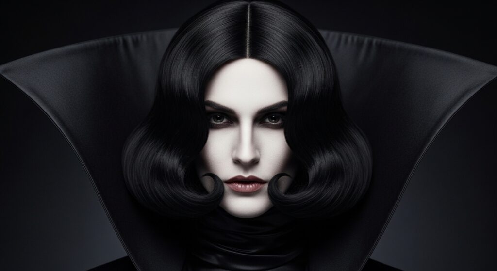 Love a darker, poetic aesthetic? Romantic goth hairstyles are stunning on oblong faces. Think deep, rich color and voluptuous waves.