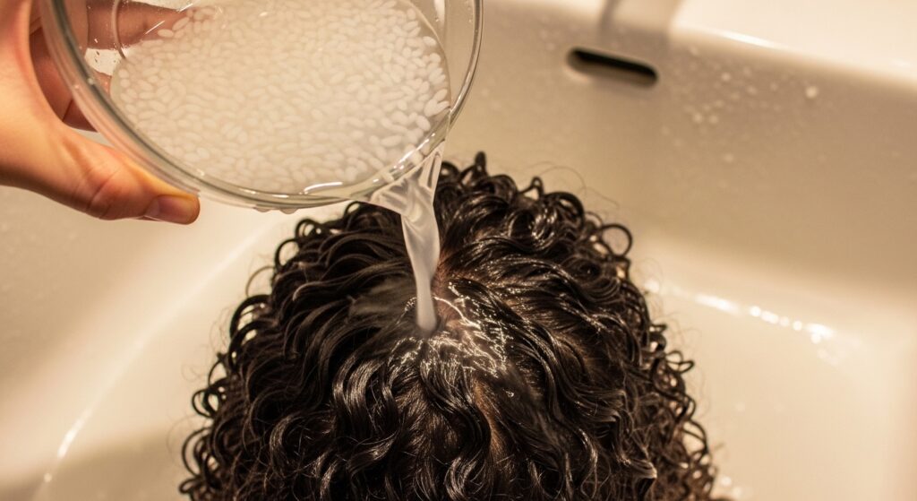 13. The Rice Water Rinse (Pre-Poo Style): Ferment or boil rice water, let it cool, and saturate your hair with it before your wash. It provides a gentle protein boost and incredible shine.
